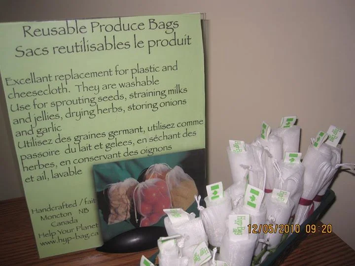 Good quality bags. So useful for many things along with buying produce and bulk items. Try sprouting seeds with them, it's easy and quick! Also good for straining milks, like almond and hemp, and jellies, making cheese and drying herbs! Anytime you use cheesecloth. Many sizes available. At the Fundy Valley Museum Market each Saturday, from May 24th to October 11, 2014